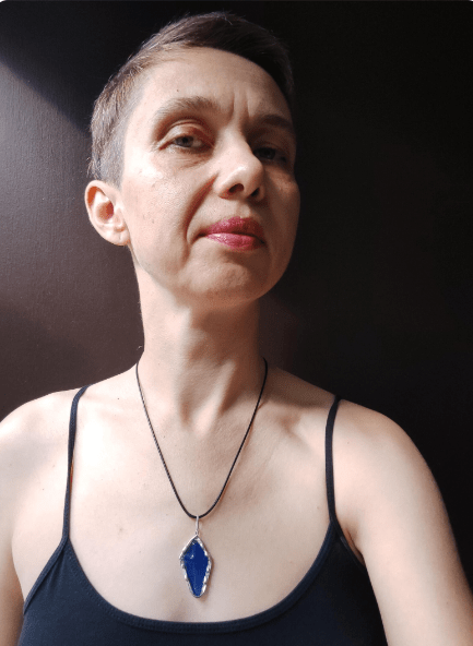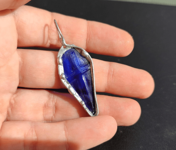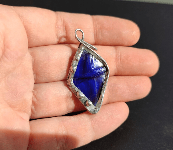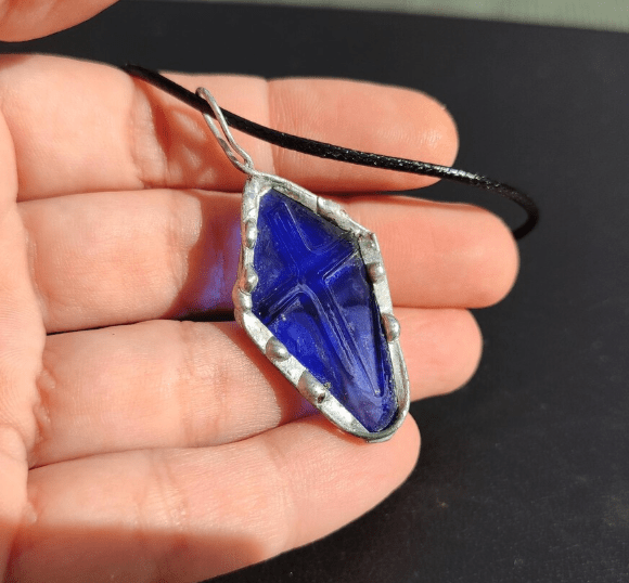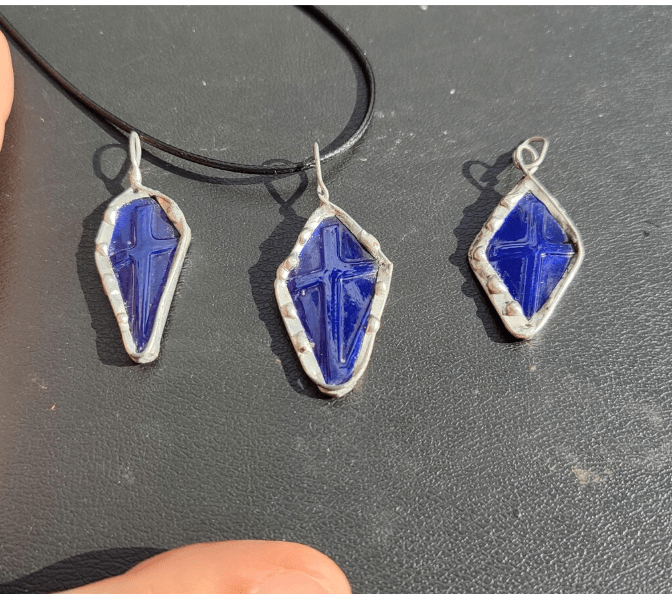 Cross necklace made of cobalt blue bottle glass. Each item will be a little different.