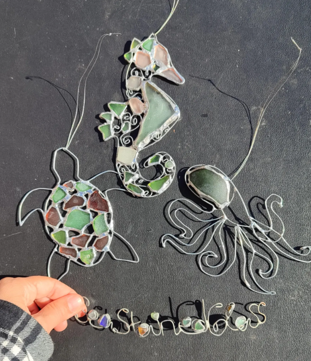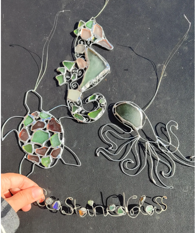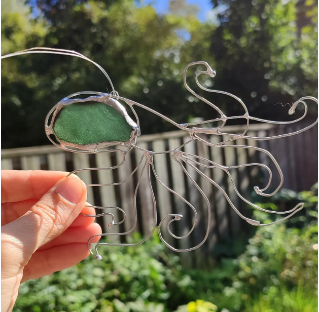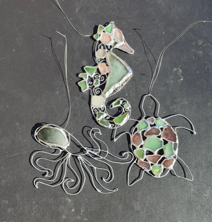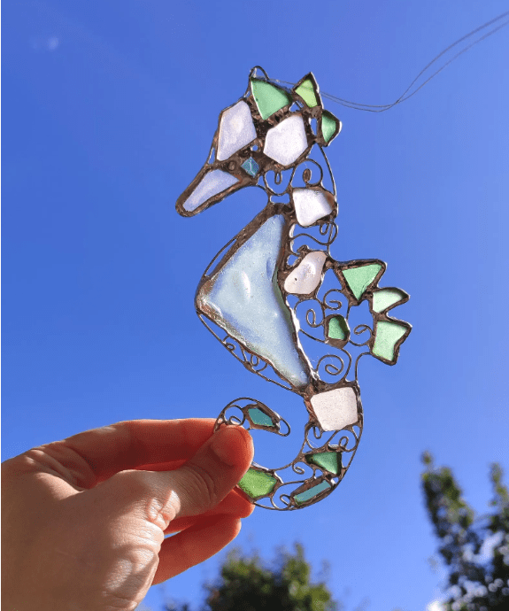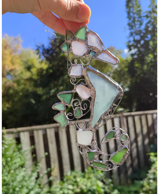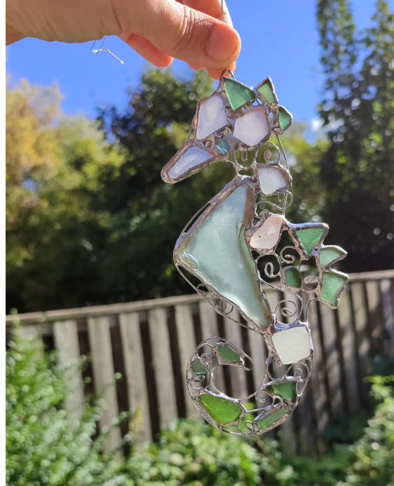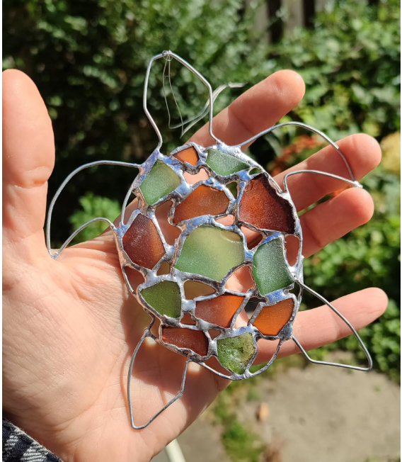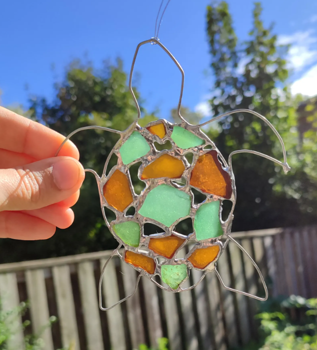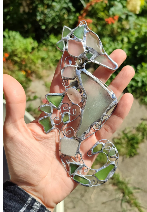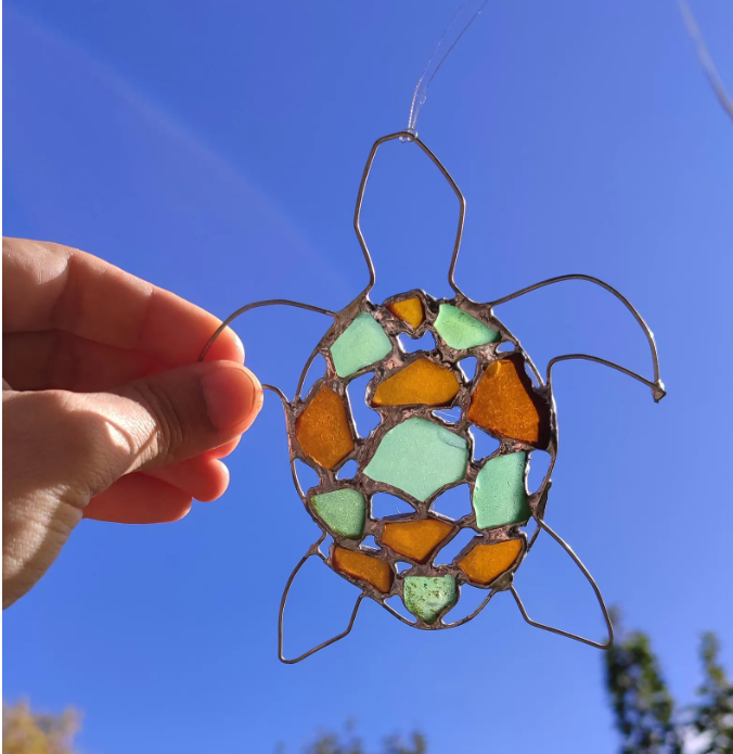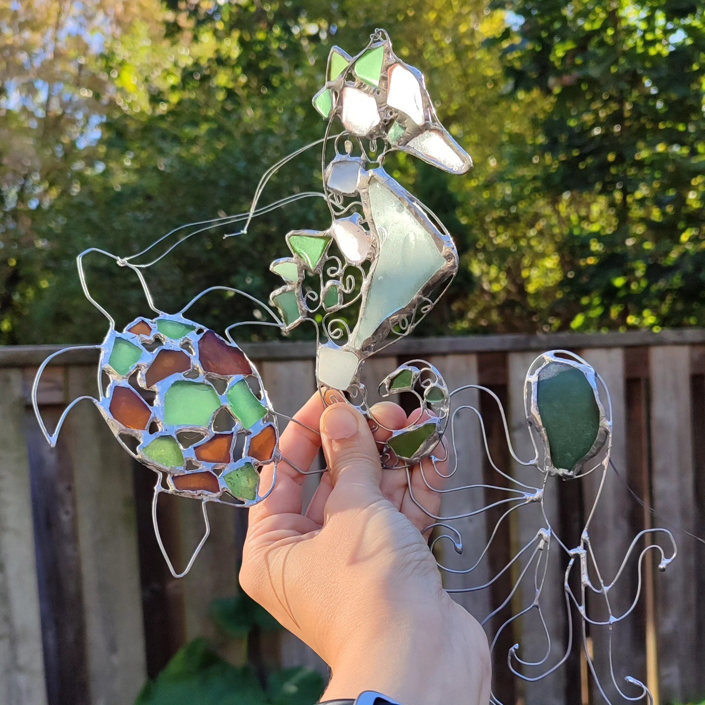 Unique ornaments, made of sea glass in stained glass technique. Colors will vary! Let me know if you prefer certain colors beforehand.