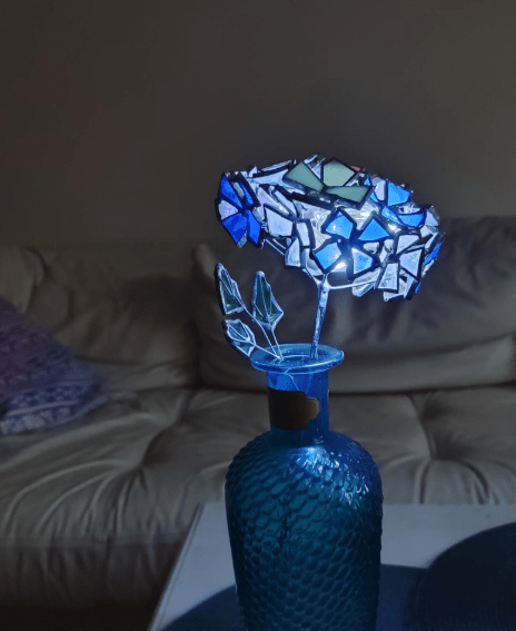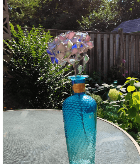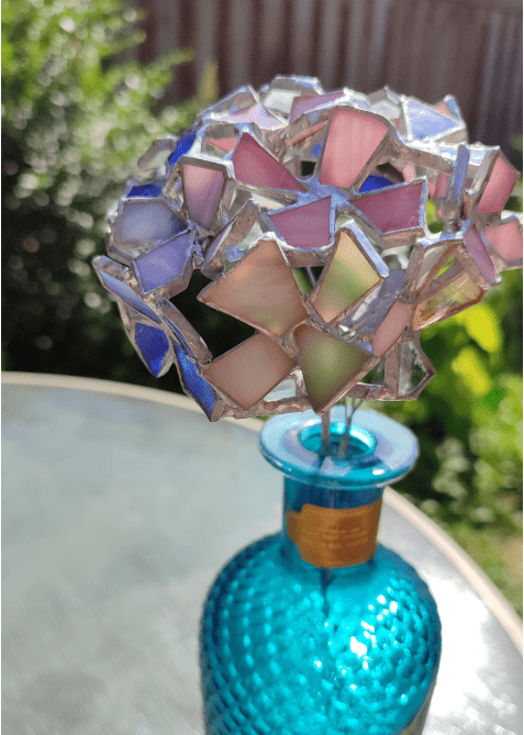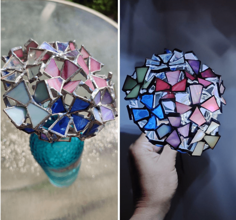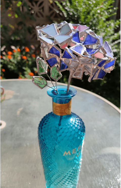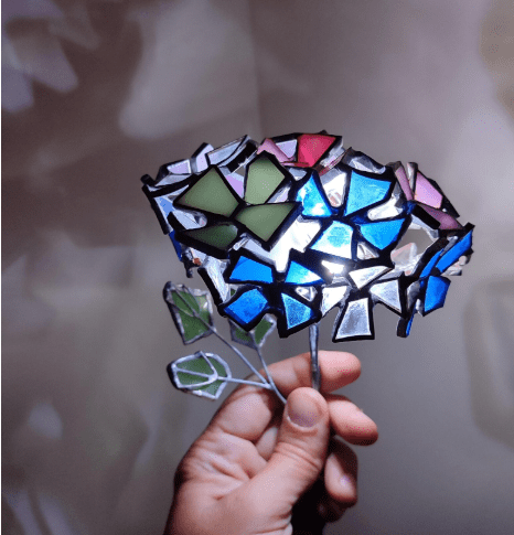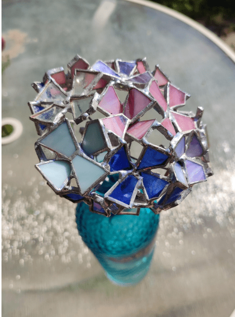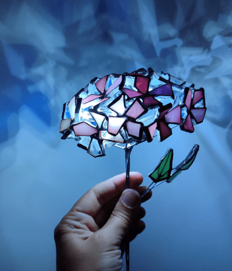 Hydrangea flower made in stained glass technique of stained glass scraps. Every flower will be unique, I make them freehand, so they differ almost like the real ones 🙂