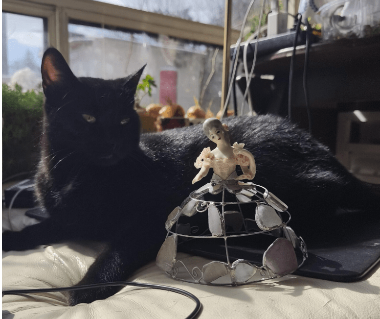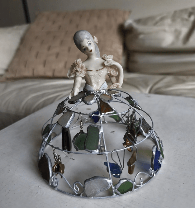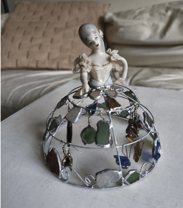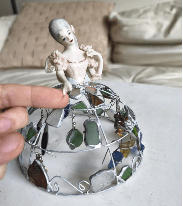 Decorative upcycled doll that can be used for keeping earrings.